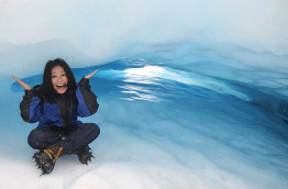 Votre hélicoptère est équipé de casques, permettant, sur le trajet, d'écouter les commentaires du pilote. Admirez du ciel ce majestueux glacier en changement permanent. Vous vous poserez sur une partie du glacier qui n'est pas accessible à pied. C'est à cet endroit que son paysage se modifie de la manière la plus spectaculaire. Les forces de la nature créent souvent des grottes de glace fantastiques à explorer, arches de glace majestueuses sous lesquelles il est possible de marcher, et autres formations spectaculaires.