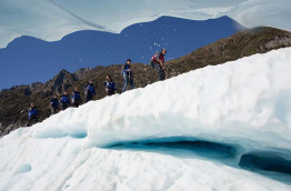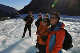 Explorez à pied cet univers de glace remarquable. Encadré par un guide expérimenté, découvrez les zones les plus dynamiques de la cascade de glace. Votre guide vous expliquera en détail ce que vous verrez, et l'origine de la formation des éléments qui composent cet environnement spectaculaire. Vous réaliserez le gigantisme absolument et stupéfiant de ce glacier. Après une marche unique de 2 h 30 environ, vous retournerez au village de Fox Glacier à bord de votre hélicoptère, offrant à nouveau l'occasion d'admirer cet environnement alpin de toute beauté. Atterrissage au bout de 4 heures environ, transfert à votre hôtel à Fox Glacier.