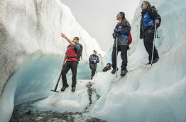 Cette excursion de 4 heures environ vous mène sur le spectaculaire glacier de Fox, que vous rejoindrez en hélicoptère et explorerez à pied accompagnés d'un guide. Une excursion dans un univers grandiose dont vous reviendrez enchantés, incluant deux trajets en hélicoptère. Vous ferez un arrêt sur une partie retirée du glacier, où le paysage se modifie de la manière la plus spectaculaire. Découvrez les grottes et arches de glace façonnées par les forces de la nature.