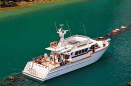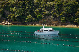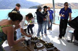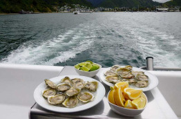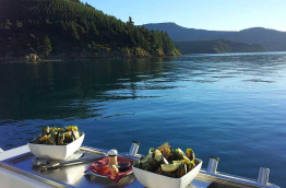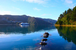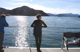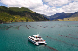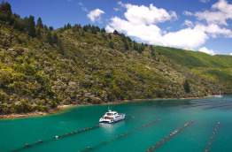 Déjeuner léger au bord de l'eau avant avant d'embarquer à bord d'un catamaran confortable de 20 m pour effectuer une croisière pittoresque à travers les majestueux Marlborough Sounds. Votre bateau dispose d'espaces intérieurs et extérieurs d'où vous pourrez admirer confortablement les nombreuses baies et criques isolées défiler sous vos yeux. Sillonnez les eaux calmes du Queen Charlotte Sound tout en dégustant des fruits de mer accompagnés d'un verre de Sauvignon blanc, provenant de la région vinicole réputée de Marlborough. Retour à la marina au bout de 3 h environ et transfert à votre hôtel à Blenheim en fin d'après-midi.