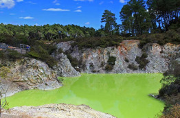 Une journée entière consacrée à la découverte de Rotorua, à explorer les sites géothermiques et découvrir la culture maorie. Parmi les curiosités autour de Rotorua, les vallées volcaniques aux eaux fumantes, aux nombreux geysers qui crachent leur jet d’eau chaude et mares bouillonnantes de Wai-O-tapu et Waimangu, sont des incontournables. Nombreuses excursions optionnelles vous sont proposées, partez en croisière sur l’un des lacs de cratère ou encore en expédition aux volcans de Mt Tarawera ou White Island.
