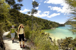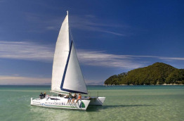 En option : au départ de Marahau ou Kaiteriteri, Excursion randonnée et voilier combinant randonnée libre de 4 heures combinée à une croisière voilier de 3 heures ;