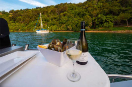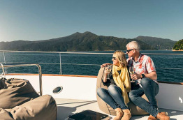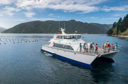 En option : croisière de 3 h à travers les majestueux Marlborough Sounds avec dégustation de moules vertes cuisinées à bord accompagnées d'un délicieux Sauvignon blanc provenant de la région de Marlborough. Retour à la marina de Havelock vers 16 h 30.