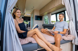 Tout a été judicieusement pensé pour faire de ce camping-car un véhicule adapté aux couples cherchant un bon confort d’hébergement tout en préservant leur budget. Le Venturer dispose d’un lit double et d’un espace de cuisine bien pensés ainsi qu’une cabine de douche avec toilettes.