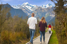 Aujourd’hui, vous quittez la côte Ouest en direction du Parc national Mt Aspiring en passant par le col de Haast à 563 m et les vallées glaciaires. C’est l’une des plus belles routes de l’île du Sud offrant une succession de paysages contrastés. En chemin, arrêt au Lac Matheson où l’image des sommets enneigés du Mt Cook et Tasman se reflète sur les eaux calmes comme dans un miroir, un célèbre cliché de Nouvelle-Zélande ! Vous passerez le col de Haast puis longerez le lac Hawea jusqu’à Queenstown, la capitale de l’aventure. La ville offre de nombreuses options pour passer la soirée, avec d’excellents restaurants, pubs, ou lieux où écouter de la musique.