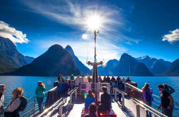 Prise en charge tôt le matin à Queenstown puis départ par la route en direction du fameux fjord de Milford. Vous effectuerez un trajet pittoresque d'environ 5 heures vers l’extrême Nord du Parc national du Fiordland. Vous longerez le lac Wakatipu, traverserez des terres agricoles pour d'abord rejoindre Te Anau. Vous emprunterez ensuite la spectaculaire « Milford Road », dévoilant d'impressionnants paysages alpins. À votre arrivée, embarquez pour une croisière dans le plus célèbre des fjords de Nouvelle-Zélande. Longez les 22 km du Milford Sound, rendez-vous jusqu'à la Mer de Tasman. Vous découvrirez des paysages à couper le souffle entre pics enneigés, canyons, cascades spectaculaires et forêt pluviale luxuriante. Admirez la montagne la plus photographiée de Nouvelle-Zélande, le Mitre Peak. Cette majestueuse montagne domine le Milford Sound du haut de ses 1 695 m. Elle forme l’un des plus hauts versants de montagne au monde qui tombe à pic dans la mer. Découvrez la richesse de la vie sauvage dans ce fjord remarquable. Partez à la rencontre d'otaries se prélassant sur les rochers. Vous aurez peut-être aussi l'opportunité d'observer des manchots et dauphins dans leur habitat naturel !