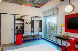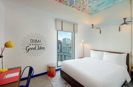 Les 150 chambres sont décorées avec des couleurs vives, et de jolies illustrations. Vous pourrez même admirer une grande carte de Dubai peinte sur le plafond de chaque chambre.
