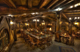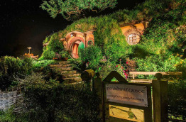 Cette visite vous donnera l’impression d’être au beau milieu du film de Peter Jackson. Vous passerez devant les nombreuses maisons miniatures creusées dans les collines ondulantes, dont seules les entrées sont apparentes et réelles. Vous verrez également le fameux moulin, la taverne du Dragon Vert, le pont à deux arcs, l'arbre de fête et autres structures créées pour constituer le décor des films Le Seigneur des Anneaux et Le Hobbit. La visite se termine au « Green Dragon Inn », lieu de retrouvailles des habitants de Hobbiton, où vous pourrez contempler le lac, le moulin et la maison de Bilbo. Vous prendrez le temps de boire un verre en vous relaxant devant le feu de cheminée crépitant avant de vous installer dans la salle où se tiendra votre dîner, toujours dans la taverne du Dragon Vert. Vous poursuivrez ensuite votre découverte du site à travers une marche nocturne, une lanterne à la main, sur les sentiers illuminés du comté de Hobbiton. Une expérience magique au cours de laquelle vous traverserez le village, éclairé par la lune et les cheminées des maisons miniatures de Hobbiton. Votre soirée se termine après 4 heures environ au Shire’s Rest Cafe.