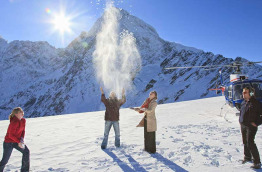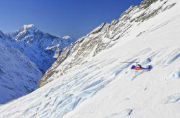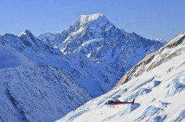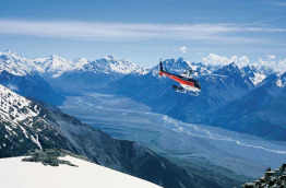 Prise en charge à l'hôtel The Hermitage, dans le village d'Aoraki-Mt Cook, pour votre transfert à Glentanner Park, à 15 minutes de route environ, ou rendez-vous sur place à Glentanner. A votre arrivée, vous prendrez place à bord d'un hélicoptère pour effectuer un trajet sensationnel au sein et en lisière du Parc national d'Aoraki-Mt Cook. Vous survolerez la partie supérieure du spectaculaire glacier de Tasman, le plus grand de Nouvelle-Zélande. Long de 27 km, ce gigantesque glacier serpente à travers les Alpes du Sud et le Parc national d'Aoraki-Mt Cook. Vous passerez devant la spectaculaire chute de glace de Hochstetter, provenant de ce glacier. Vous pourrez admirer la façade Est du majestueux Mt Cook, autre trésor du patrimoine naturel de la Nouvelle-Zélande. Culminant à 3 724 m, il s'agit de sa plus haute montagne. Votre hélicoptère se posera quelques minutes en altitude pour vous permettre de contempler à terre le paysage de toute beauté offert par cet environnement alpin. Le trajet vous ramenant à Glentanner Park vous mènera au cœur des montagnes Burnett et vous donnera une dernière fois l'occasion de vous émerveiller en survolant le vaste bassin intermontagneux de Mackenzie. Atterrissage au bout de 40 minutes environ, transfert à l'hôtel The Hermitage, dans le village d'Aoraki-Mt Cook.
