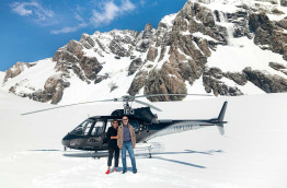 À votre arrivée, vous prendrez place à bord d'un hélicoptère pour effectuer un trajet sensationnel dans le Parc national d'Aoraki-Mt Cook. Vous aurez l'occasion d'admirer du ciel la plus haute montagne de Nouvelle-Zélande, culminant à 3 724 m : le majestueux Mt Cook. Vous survolerez sur toute sa longueur le spectaculaire glacier de Tasman. Ce glacier, sur lequel vous vous poserez 10 minutes environ, est le plus grand de Nouvelle-Zélande. Long de 27 km, il serpente à travers les Alpes du Sud et le Parc national d'Aoraki-Mt Cook, et prend fin dans le lac Tasman. Une fois posé sur cet imposant glacier, votre hélicoptère coupera son moteur pour vous permettre de mieux apprécier le paysage de toute beauté qui s'offrira à vous sur les paisibles montagnes. Après ce moment magique de contemplation, vous aurez l'occasion d'admirer la spectaculaire chute de glace de Hochstetter, provenant du glacier de Tasman, sur le trajet vous ramenant à l'aéroport d'Aoraki-Mt Cook. Atterrissage au bout de 45 minutes environ, transfert au village.