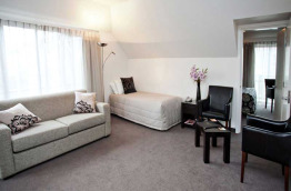 Pratiques pour les familles ou les groupes d'amis, les 6 Large One Bedroom Units sont des appartements plus spacieux pouvant accueillir jusqu'à 5 personnes. La chambre séparée possède un lit double queen-size et un lit simple pour accueillir 3 personnes, et dans le salon se trouvent un lit simple et un canapé-lit convertible pour une cinquième personne. La cuisine équipée dispose d’un four à micro-ondes, un réfrigérateur, un nécessaire à thé et café. La salle de bains est avec douche et baignoire.
