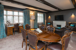 D’une superficie de 56 m2, la Royal Suite offre plus d’espace et de confort. Elle comprend une chambre avec lit king-size, un salon séparé avec espace repas et une cheminée