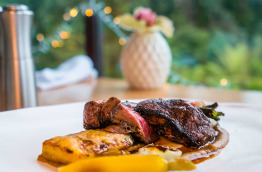 Le dîner est servi à table, à la carte avec un menu dégustation spécialement créé pour mettre en scène des produits frais et locaux.