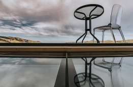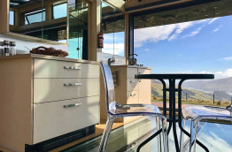 Il dispose d’une kitchenette équipée d’un réfrigérateur, de plaques de cuisson et du nécessaire à thé et à café, d’un système de chauffage biocombustible qui maintient la chaleur sur le sol en verre et d’un lit Queen-size très confortable.