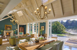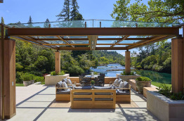 D’une superficie de 364 m2, il est composé d’un séjour et salle à manger avec cheminée, une cuisine entièrement équipée, un espace travail et détente avec bureau, ordinateur, téléviseur écran plat et cheminée. Pour le logement, vous bénéficiez de 4 suites spacieuses et superbement décorées, chacune avec un grand lit king-size, une cheminée, une salle de bains et un dressing. Deux chambres ont vue sur la rivière et les deux autres possèdent une petite cour intérieure privée. Une grande terrasse sépare le séjour de la piscine à débordement. Le cottage dispose également d’un bain à jets chauffé et de tout le nécessaire pour dîner à l’extérieur ou simplement prendre le soleil.