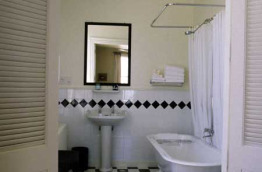 The Janet Frame Room possède un lit double queen-size et un lit simple. La salle de bains est aménagée d'une baignoire à l'ancienne avec une pomme de douche.