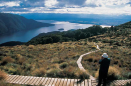 Transfert depuis votre hôtel de Te Anau jusqu’au point d’embarcation. De là, vous traverserez le lac Te Anau à bord d'un bateau-taxi pour rejoindre « Brod Bay » à son extrémité Sud, avec ses eaux limpides et son sable blanc. À votre arrivée, vous débutez votre randonnée guidée sur la pittoresque Kepler Track. Ce sentier pédestre de 60 km en boucle est niché entre les lacs Te Anau et Manapouri. Les marcheurs découvriront tous les paysages typiques du Fiordland, les montagnes, la forêt vierge, les cascades et les vallées sculptées par les glaciers. Vous effectuez 6 km environ sur un sentier bien formé depuis « Brod Bay » pour revenir en direction Te Anau.